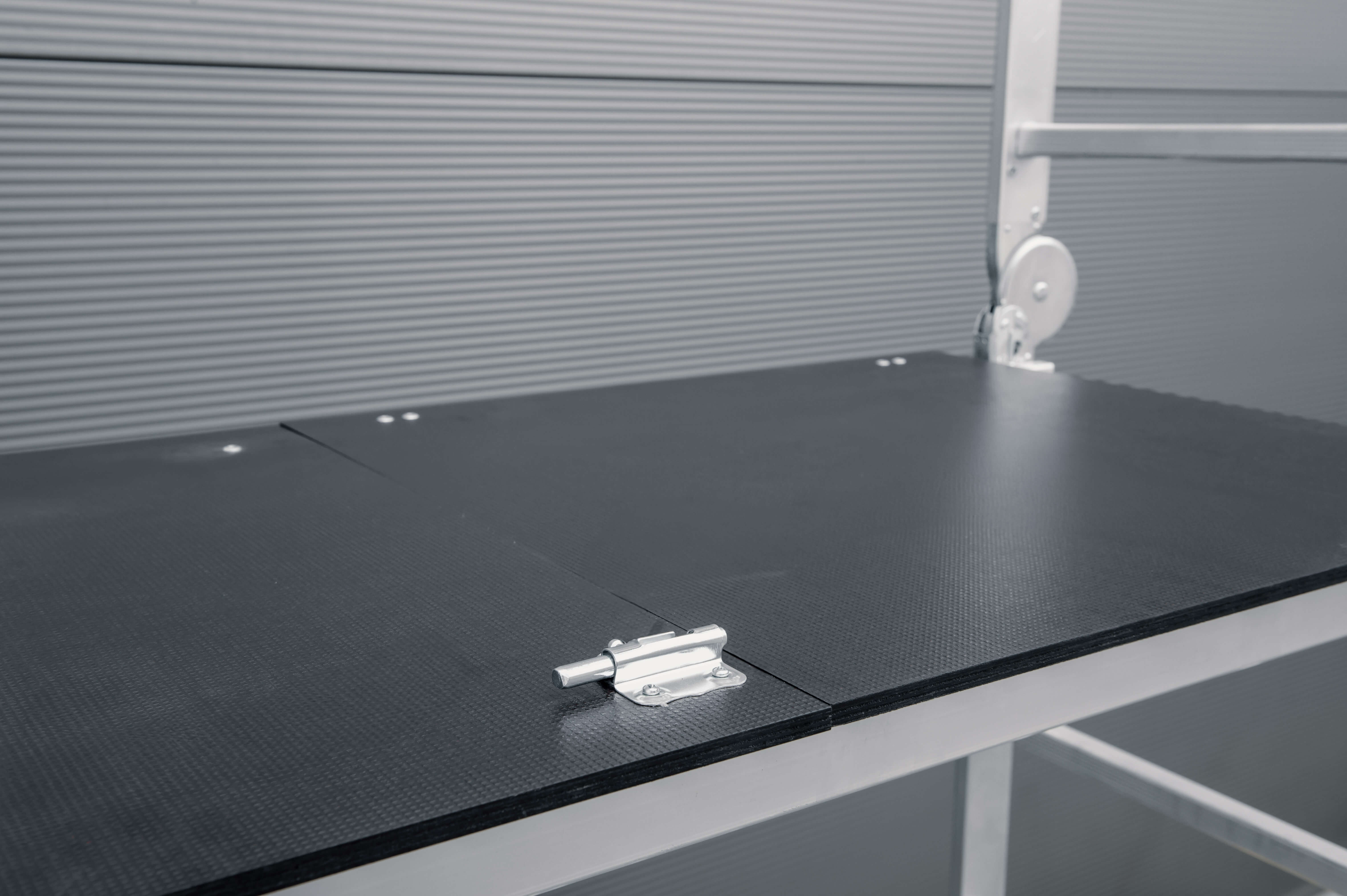 Die Plattform besteht aus strapazierfähigem, wasserfestem Sperrholz mit einer rutschfesten Oberfläche.