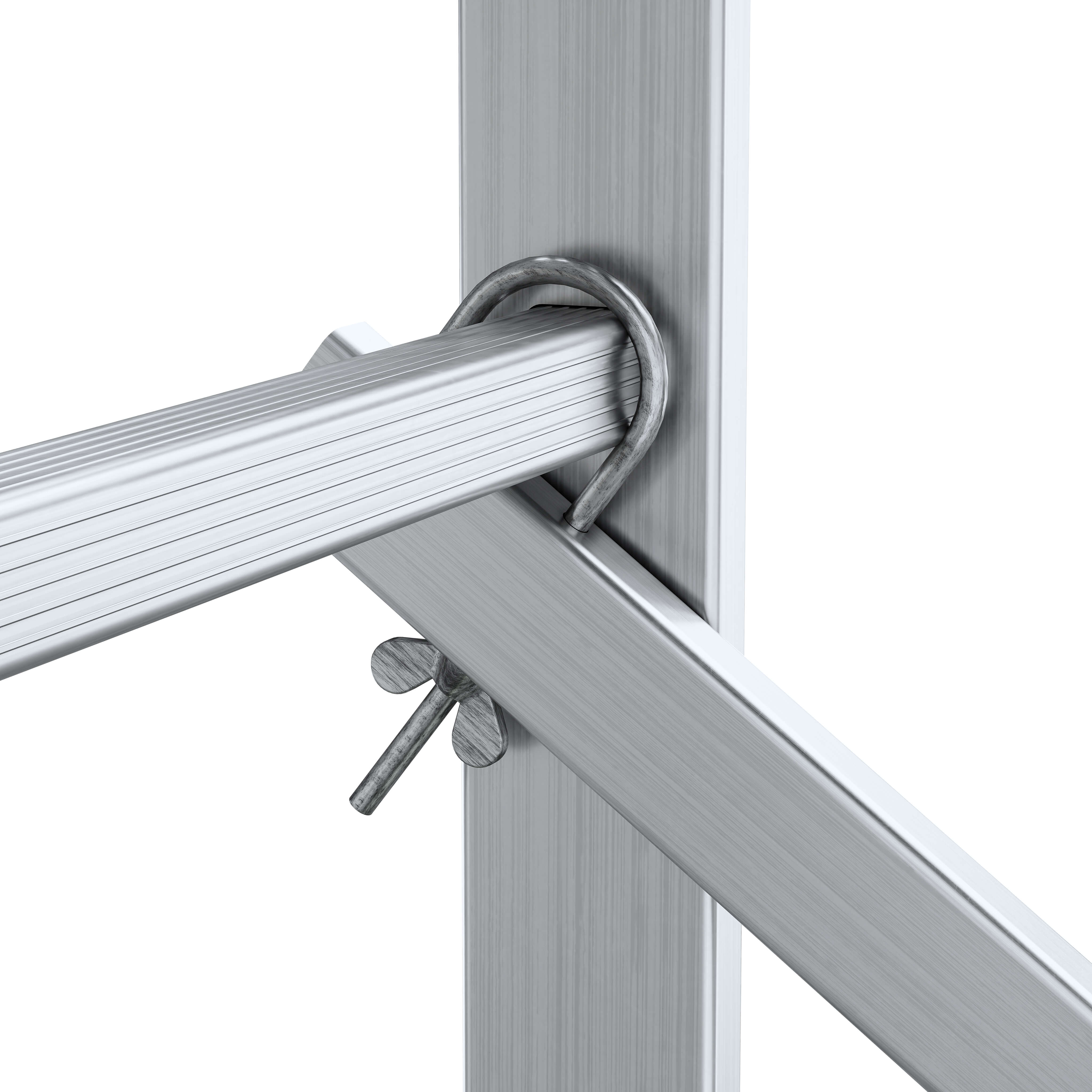 Fahrgerüste - multifunktional und vielseitig einsetzbar. Die einzelnen Gerüstteile können als freistehende zweiteilige Leiter, als Anlegeleiter und als Arbeitspodest verwendet werden. Hergestellt aus hochwertigem Aluminium mit hoher Witterungsbeständigkeit. Das Gerüst verfügt über eine Konformitätserklärung nach der europäischen Norm EN 131. Es ist ideal für die tägliche Arbeit von Fachleuten, kann aber auch für eine Vielzahl von Aufgaben im Haushalt verwendet werden, und seine robuste und stabile Konstruktion sorgt dafür, dass er viele Jahre lang verwendet werden kann. Einfacher Transport des Gerüsts dank der montierten Kunststoffräder. Hervorragendes Preis-Leistungs-Verhältnis.